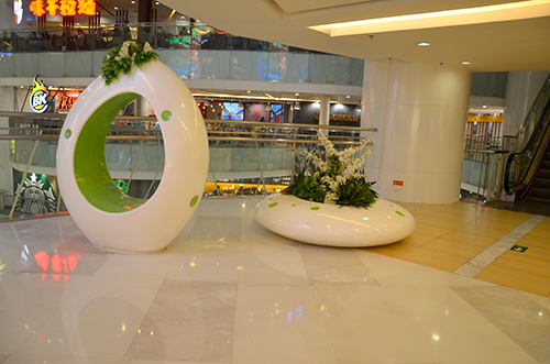 萬程工藝,不僅僅只生產(chǎn)玻璃鋼材質(zhì)工藝品,我廠有獨立的玻璃鋼、木工、金屬車間,可以按客戶要求選用材質(zhì)制作,綜合工藝及材質(zhì)的利用,是我廠發(fā)展目標(biāo),及商業(yè)美陳制作發(fā)展趨勢,我們常說對一個人的第一印象很重要,同樣,商場給人的第一印象也很重要,如果一個商場有漂亮的、特色的商業(yè)美陳雕塑、商業(yè)美陳花盆、商業(yè)美陳系現(xiàn)有裝飾,很容易讓人記憶深刻的同時商場美陳還可以提升商場的形象和品味。